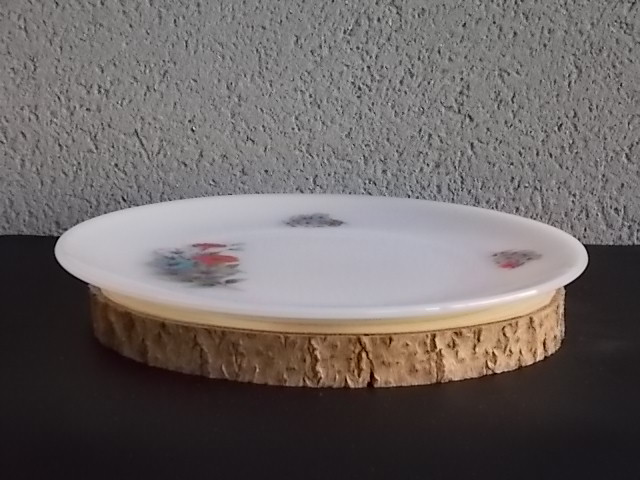 Assiette plat « Liseron », en verre Opale et motif floral. De la marque Arcopal France.