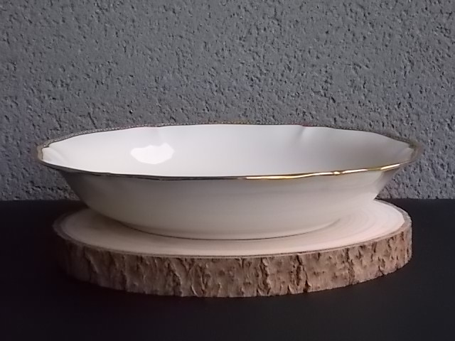 Légumier « Or », en porcelaine Blanche, à décors de frise en Dorure. De l’ Ancienne Fabrique Royale, Limoges France.