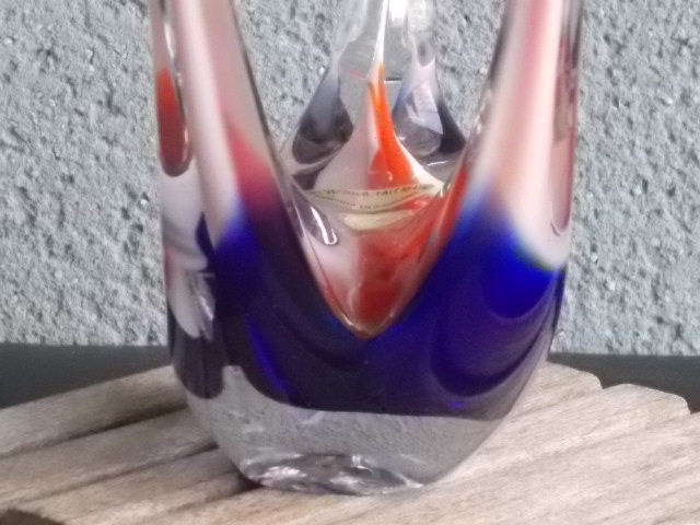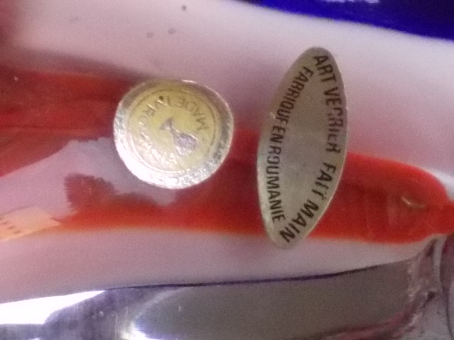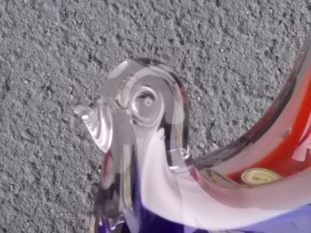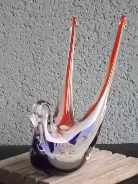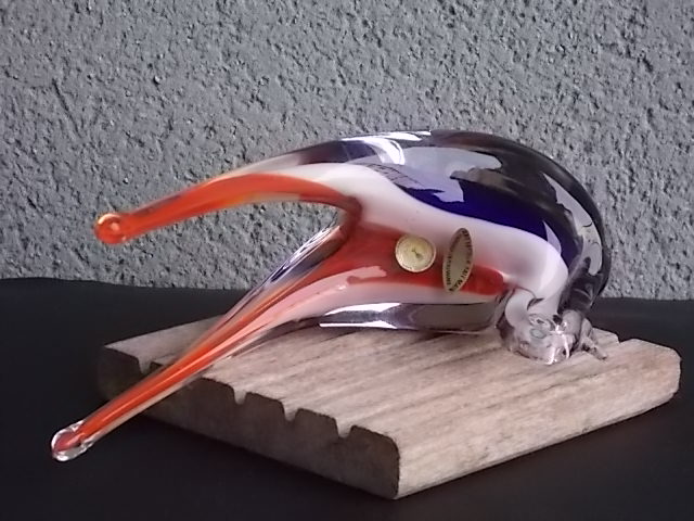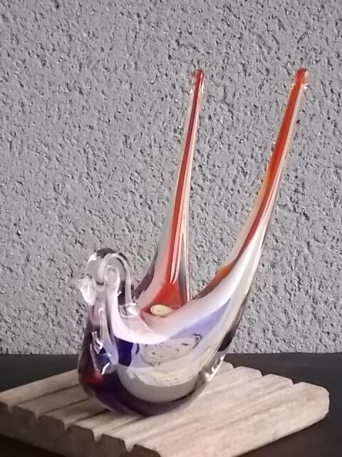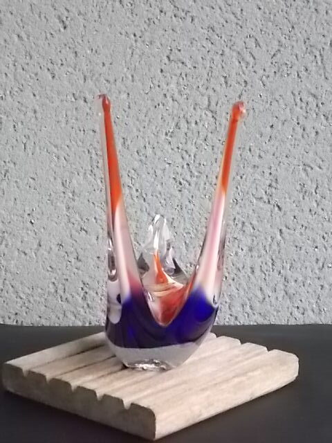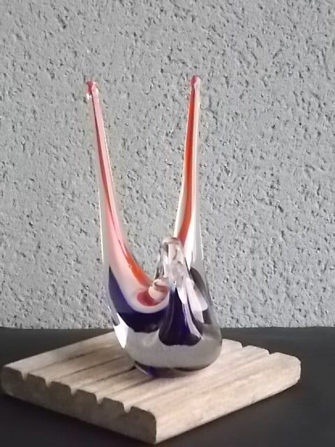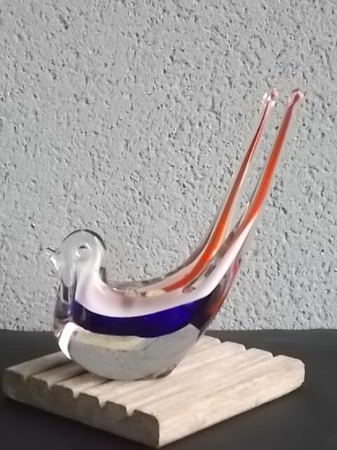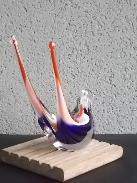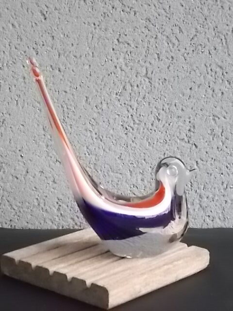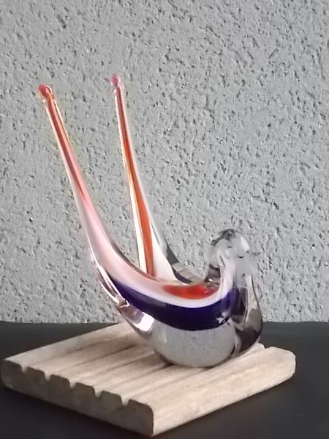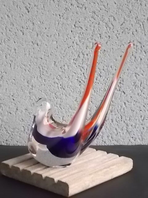 Oiseau en verre soufflé bouche tricolore. Art Verrier. Made in Romania.